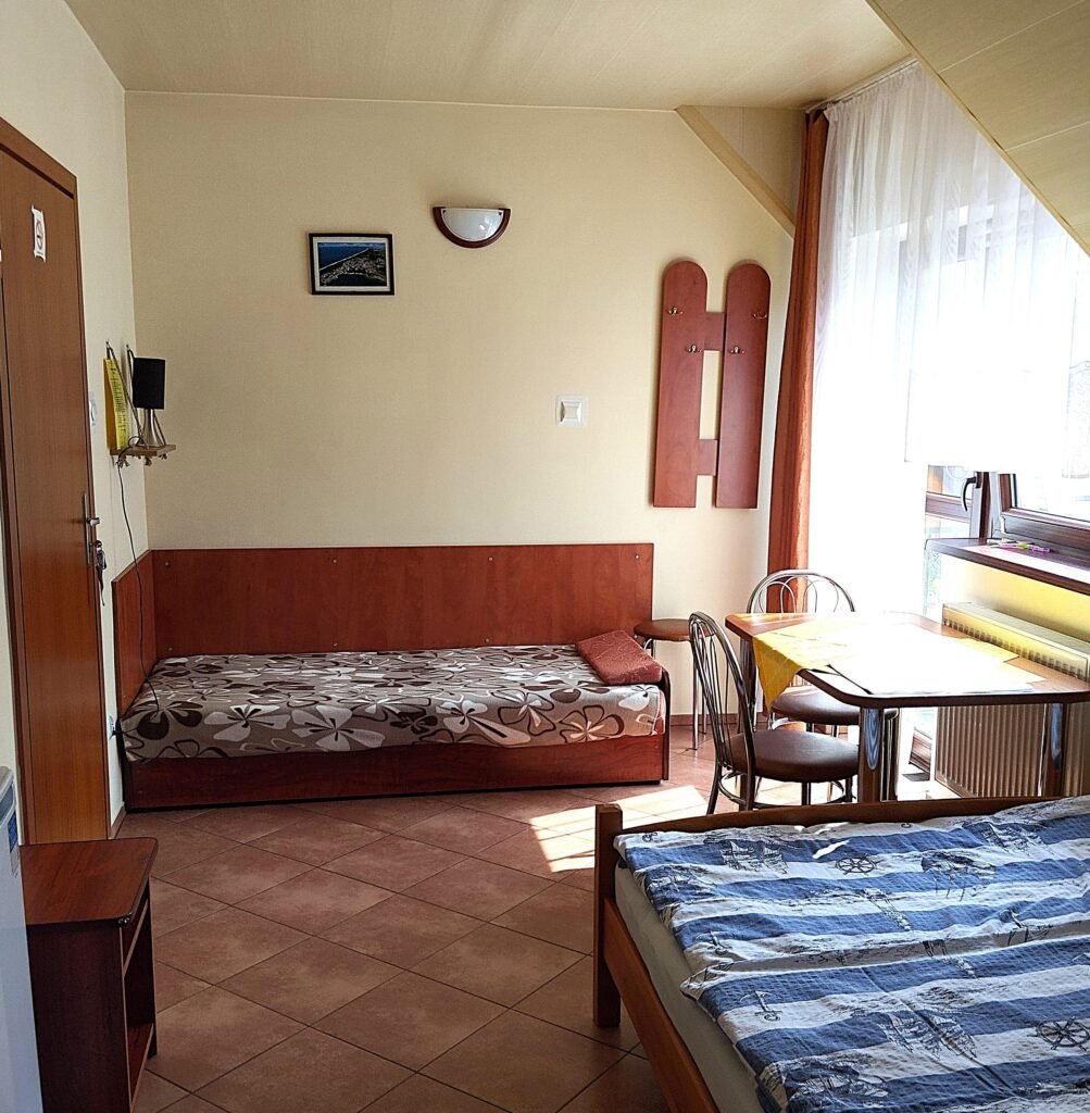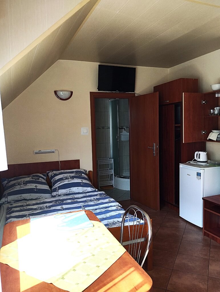 Oferujemy komfortowe pokoje 2-, 3- i 4-osobowe z łazienkami i balkonami. Goście mogą korzystać z mini kuchni, grilla oraz altany ogrodowej. Na terenie obiektu dostępny jest bezpłatny parking. W pobliżu znajduje się przystań rybacka, wypożyczalnie kajaków i rowerów wodnych, stadnina koni, a także baseny w okolicznych ośrodkach. Nieopodal w Darłówku Wschodnim znajduje się Aquapark.
